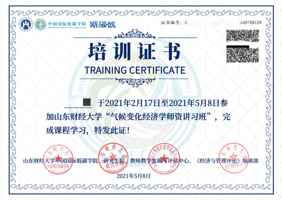 2021年5月8日上午,山东财经大学首届气候变化师资讲习班圆满收官。此次讲习班由山东财经大学中国国际低碳学院联合研究生院、教师教学发展与评估中心、《经济与管理评论》编辑部、低碳城共同举办,于2021年2月17日云端正式开讲,历时三个月。