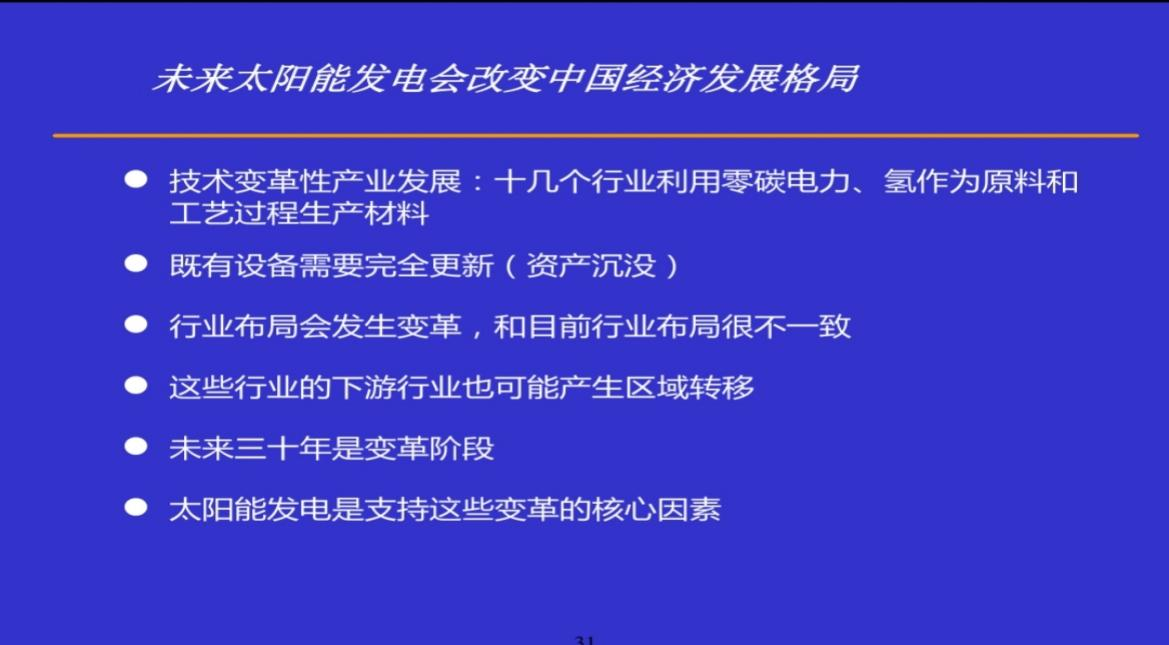 姜克隽研究员还提出未来工业布局将由可再生能源和核电的价格决定,工业会转移到便宜的可再生能源和核电的区域。未来基础化工和金属冶炼会转移到这些地区,同时也会带动此类行业的相关下游行业转移至此。