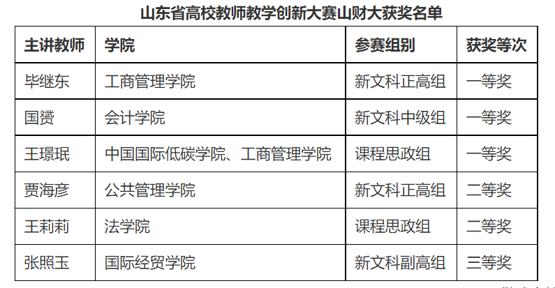 近日,山东省普通高等学校教师教学创新大赛决赛落下帷幕,经过激烈角逐,我院王璟珉教授课程团队获山东省高校教师教学创新大赛一等奖。