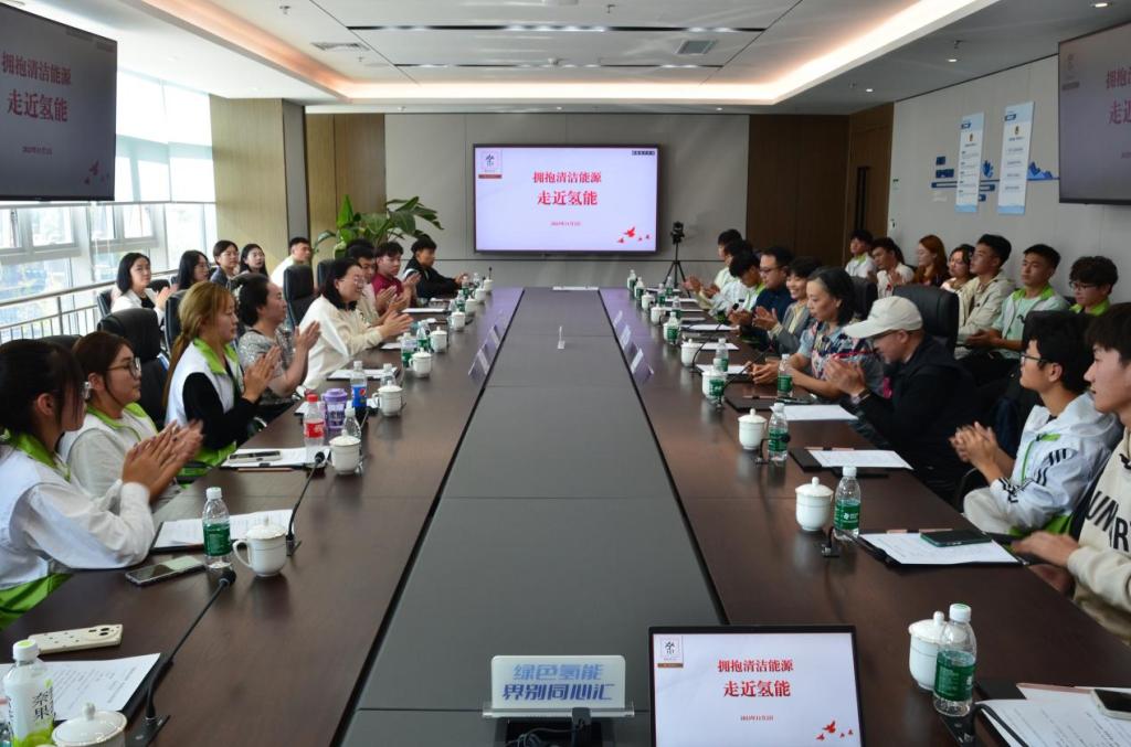 最后,学院师生同其他参会人员参与山东省政协“绿色氢能·界别同心汇”座谈交流,省政协委员、济南市绿动氢能科技有限公司总经理陈颖针对国家氢能发展战略和山东省济南市的氢能发展形势和布局进行了介绍,各位参会者积极探讨氢能利用的价值及氢能在生活中的应用,各位同学也发表了对绿色未来的畅想和对氢能发展的期待。