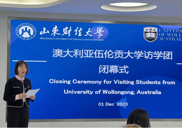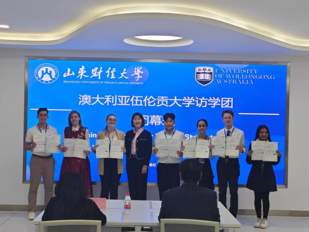 此次活动不仅深化了澳大利亚伍伦贡大学与山东财经大学之间的友好关系,更为两校学生提供了难得的交流平台。闭幕式上,颁发了结业证书,并由学生代表表达了对此次访学的感谢和收获。学生代表Jonathan Keyes发来感谢视频,并用中文表示“感谢山东财经大学老师们的精心安排,此次中国之行收获很多,感受到了孔孟文化,期待再次来中国”。学生代表Gordana Invanoska表示,此次山东财经大学之行不仅学习了低碳与可持续商业、智能会计相关课程,还通过实地考察方式切实了解了中国绿色低碳行动和优秀经验,同时也感受到了山财大师生的热情。她说这次访学将成为她一生难忘的美好回忆。