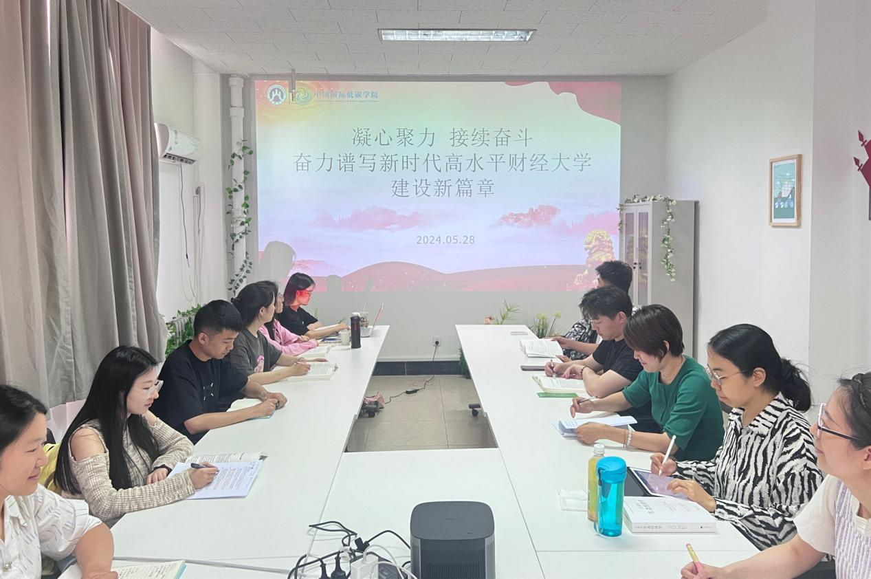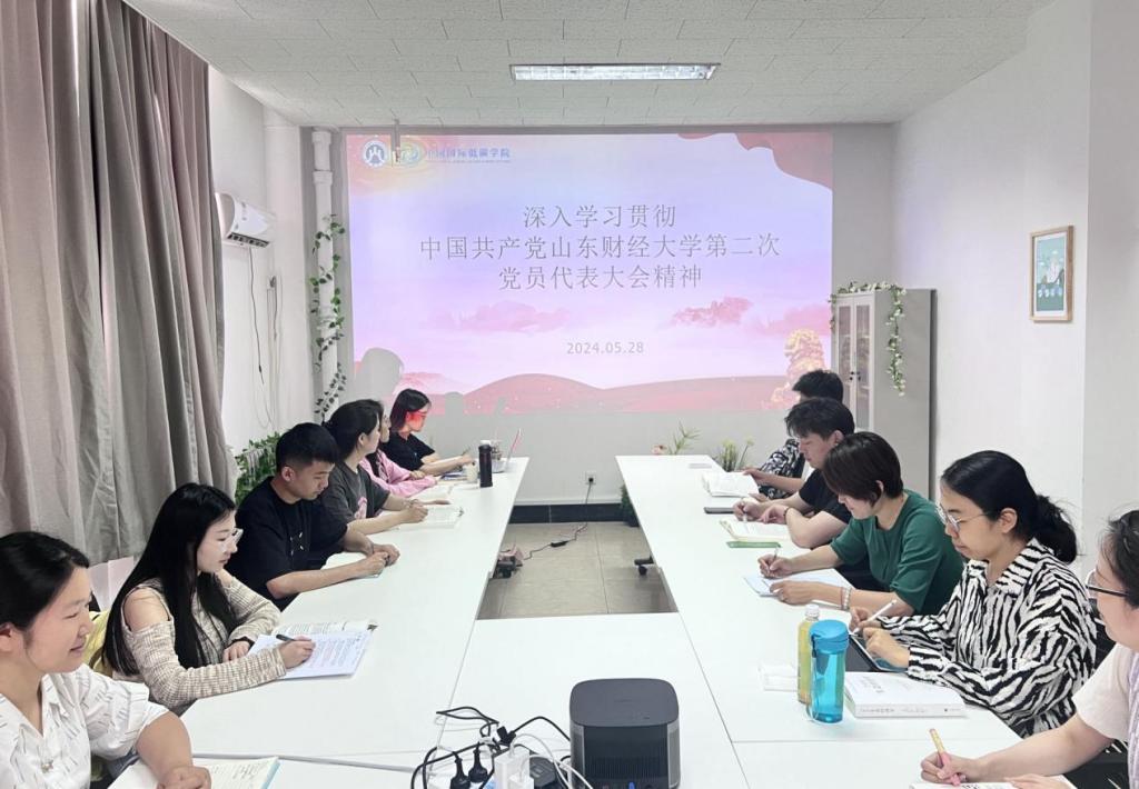 中国共产党山东财经大学第二次党员代表大会于5月22日胜利闭幕!为学习宣传会议精神,研究安排落实举措,5月28日下午,我院组织全体师生在燕山校区2807会议室学习山东财经大学第二次党员代表大会精神。执行院长王璟珉主持会议。