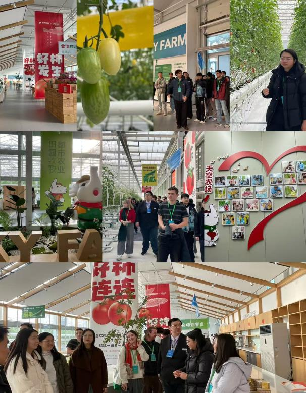 随后,同学们参观了天空农场。农场负责人详细介绍了天空农场的19个番茄品种,以及在种植过程中采用的荷兰无土栽培椰糠种植技术,熊蜂授粉技术,滴灌技术等。农场种植采用物理防虫,保证0农药残留,0人工激素。同学们体验了采摘番茄的乐趣,感受到碳中和农业技术的创新力量。