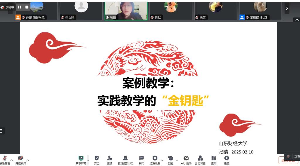 为了进一步提升教师教学质量,推动案例教学方法在课堂中的有效应用,2月10日下午,我院通过举办“案例教学赋能教学质量提升研讨会”线上会议,我院执行院长王璟珉,金钥匙低碳行动中心主任张晴以及学院全体教师参加会议。