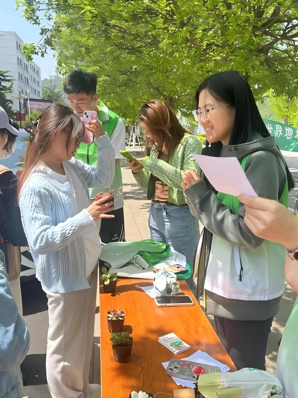 4月22日,值此第56个世界地球日来临之际,我院积极响应"珍爱地球 人与自然和谐共生"主题,在燕山校区图书馆前组织开展了系列宣传活动。通过环保知识问答、展示光盘图片、环保承诺签名等多元化形式,号召全校师生参与到保护地球中来。