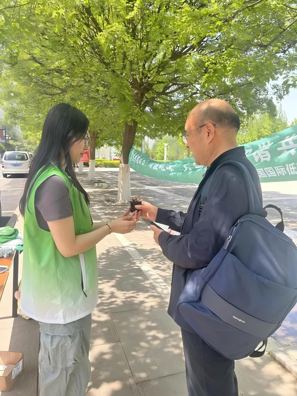 "环保知识竞答"环节反响热烈,挑战者通过随机抽取涵盖气候变化、资源保护等领域的知识卡片进行作答,达成100%正确率的挑战者将获赠环保主题纪念品——微型绿植盆栽及种子纸笺,在增长生态知识的同时,进一步激发了同学们践行可持续生活理念的热情。