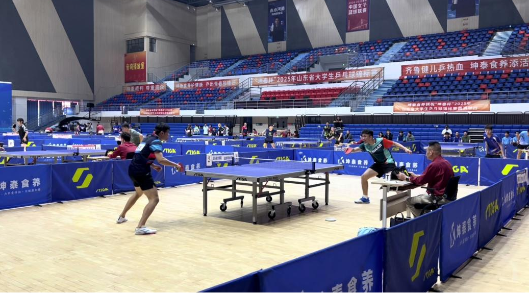 5月23日,2025年山东省大学生乒乓球锦标赛在临沂市临沭县体育馆落下帷幕。我校乒乓球队由体育学院院长李刚领队,曹杰、曲红军老师带队,共派出18名运动员参加了丙组(高水平组)和甲组(普通组)比赛。我院研究生李成龙参加了甲组(普通组)比赛,其所在甲组获男子团体第四名.