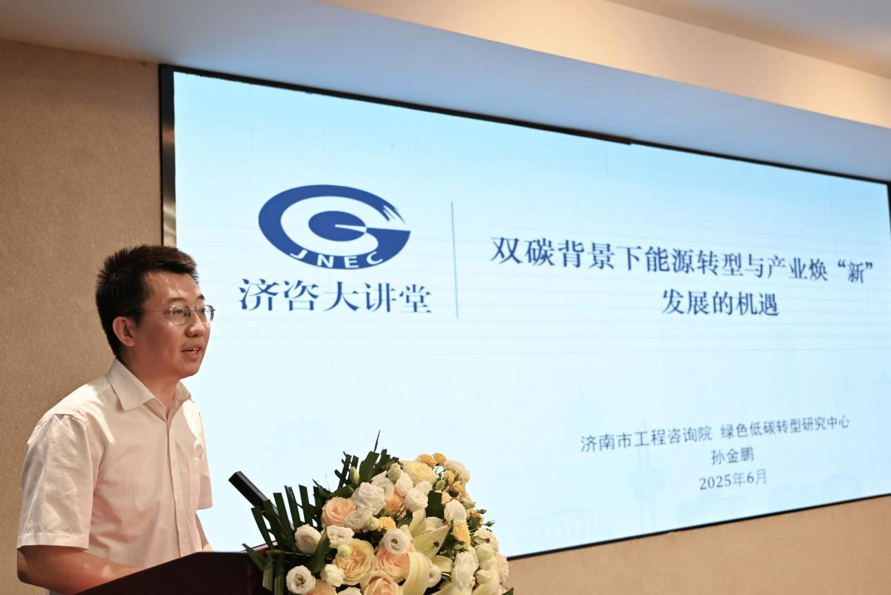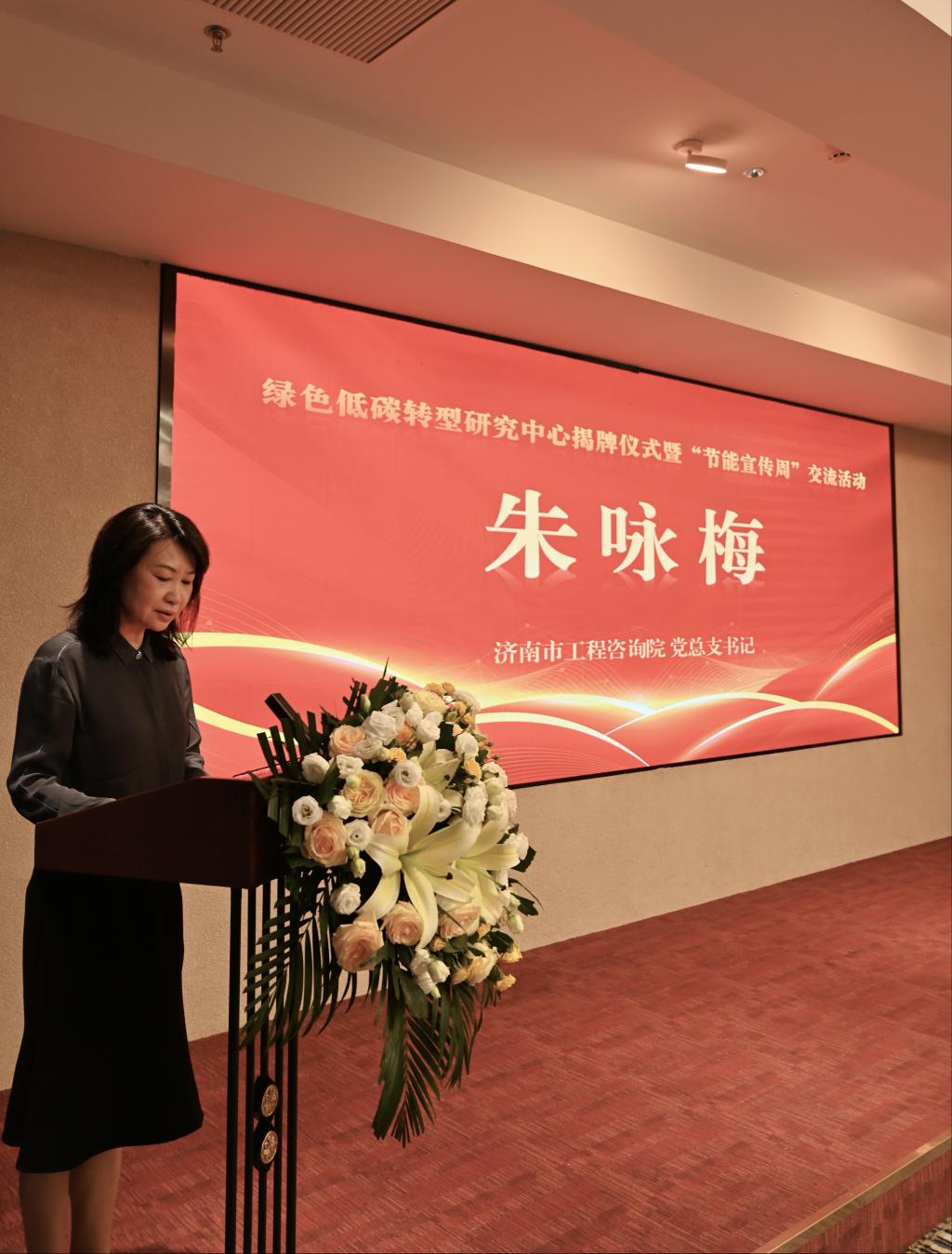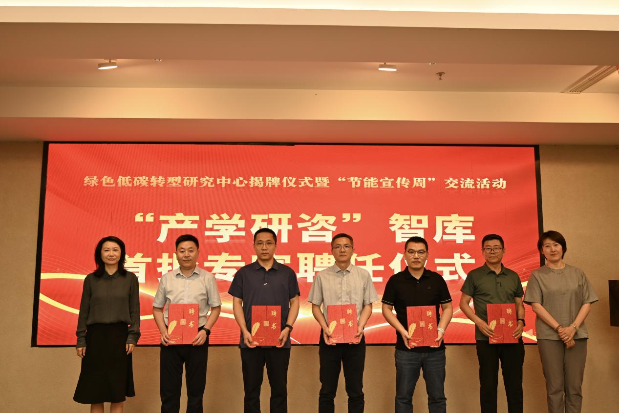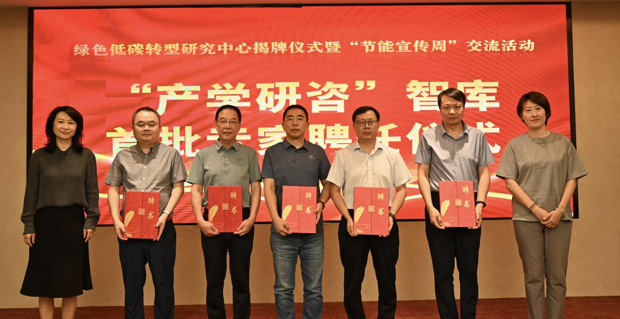 2025年6月25日是第十三个“全国低碳日”,主题为“碳路先锋、绿动未来”。在这个特殊的日子里,山东财经大学中国国际低碳学院与济南市工程咨询院在济南吉华大厦联合举办了绿色低碳转型研究中心揭牌仪式暨‘节能宣传周’交流活动。济南市工程咨询院党总支书记朱咏梅、山东节能协会会长赵培建等领导出席了本次活动。本次活动邀请了山东大学、齐鲁工业大学(山东省科学院)、山东建筑大学、山东交通学院、山东省电力工程咨询院有限公司、山东节能协会等十余位高校和机构的专家代表,以及山东核电、万华化学、南山铝业、东明石化、永锋集团、日钢集团、华鲁恒升等省内近三十家重点企业的企业家代表们参加;同时参会的还有我校部分师生与咨询院能源和环境资源部业务人员,共计五十余人参加了本次活动。