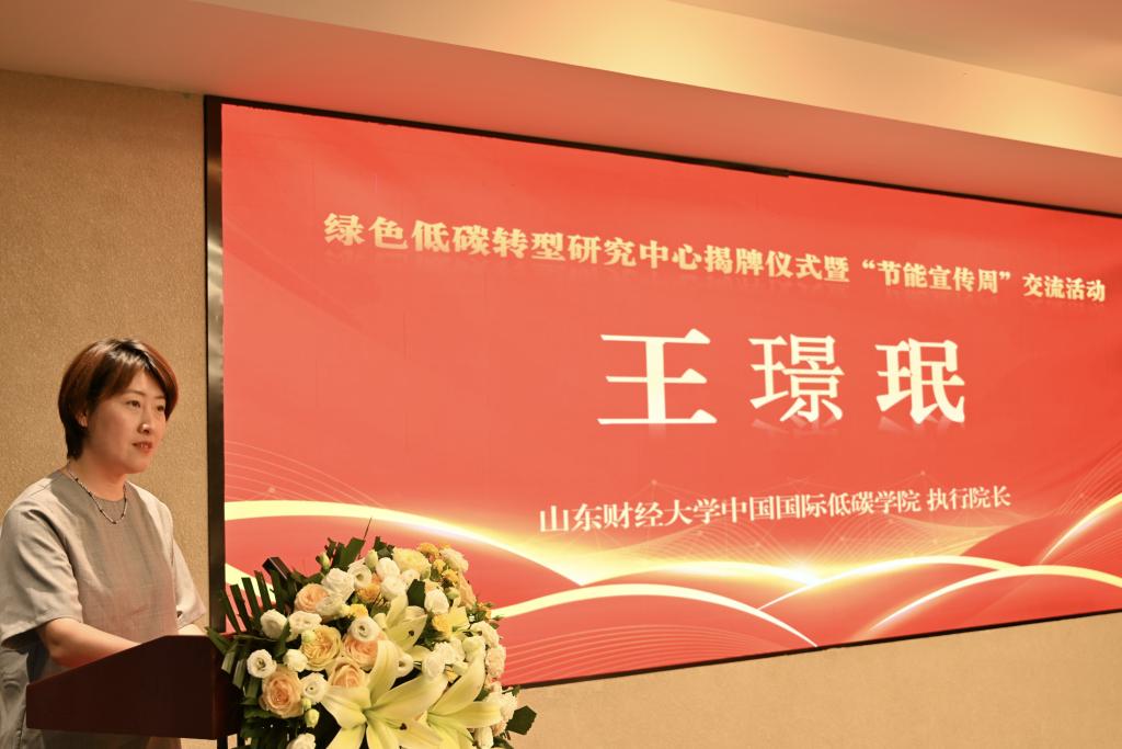 学院执行院长王璟珉在致辞中介绍了山东财经大学在服务国家战略方面的成果,以及学院在低碳交叉学科建设、学术研究、人才培养和社会能力建设等方面的努力,并展望了以研究中心为载体实现各方携手开展工作的具体路径,如为政府与企业提供“诊断—规划—落地”全链条解决方案,贯通课题研究—实习实践—产业服务的综合路径,以及举办绿色技术路演和案例征集等工作。