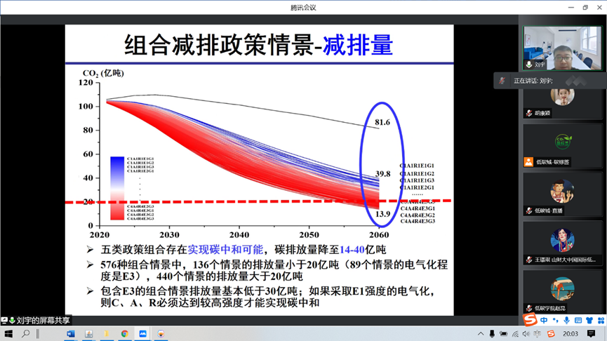此次讲座,中国科学院科技战略研究院刘宇教授做了题为《2060年碳中和经济与排放影响分析——基于动态CGE模型》的汇报。