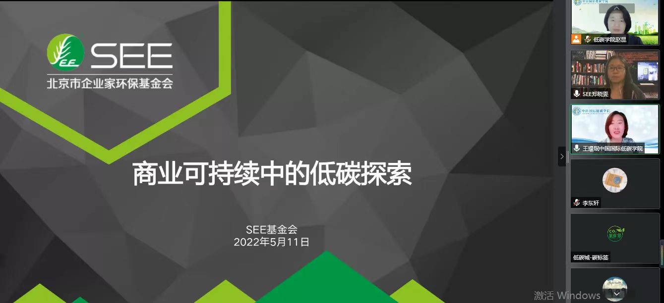中国国际低碳学院“CARBON 100”第二十讲于5月11开讲,本次讲座是“低碳践行者系列”第一期,并于低碳城同步进行直播,在线观看达48988人次,我们邀请到了来自北京市企业家环保基金会气候变化与商业可持续项目经理郑晓雯开展“商业可持续中的低碳探索”讲座,和大家一起探索公益商业化的经验和做法。
