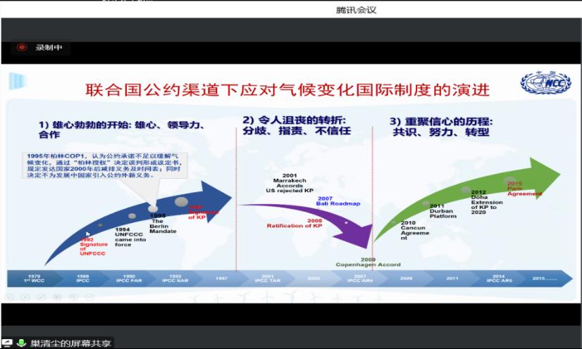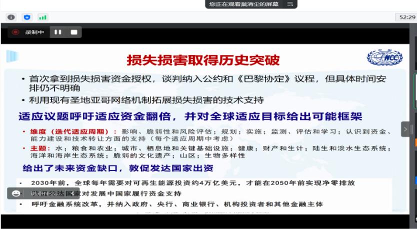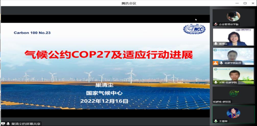 巢主任从“国际气候治理进程”、“联合国气候变化COP27大会成果”、“对我国气候适应的启示”三方面进行讲解。