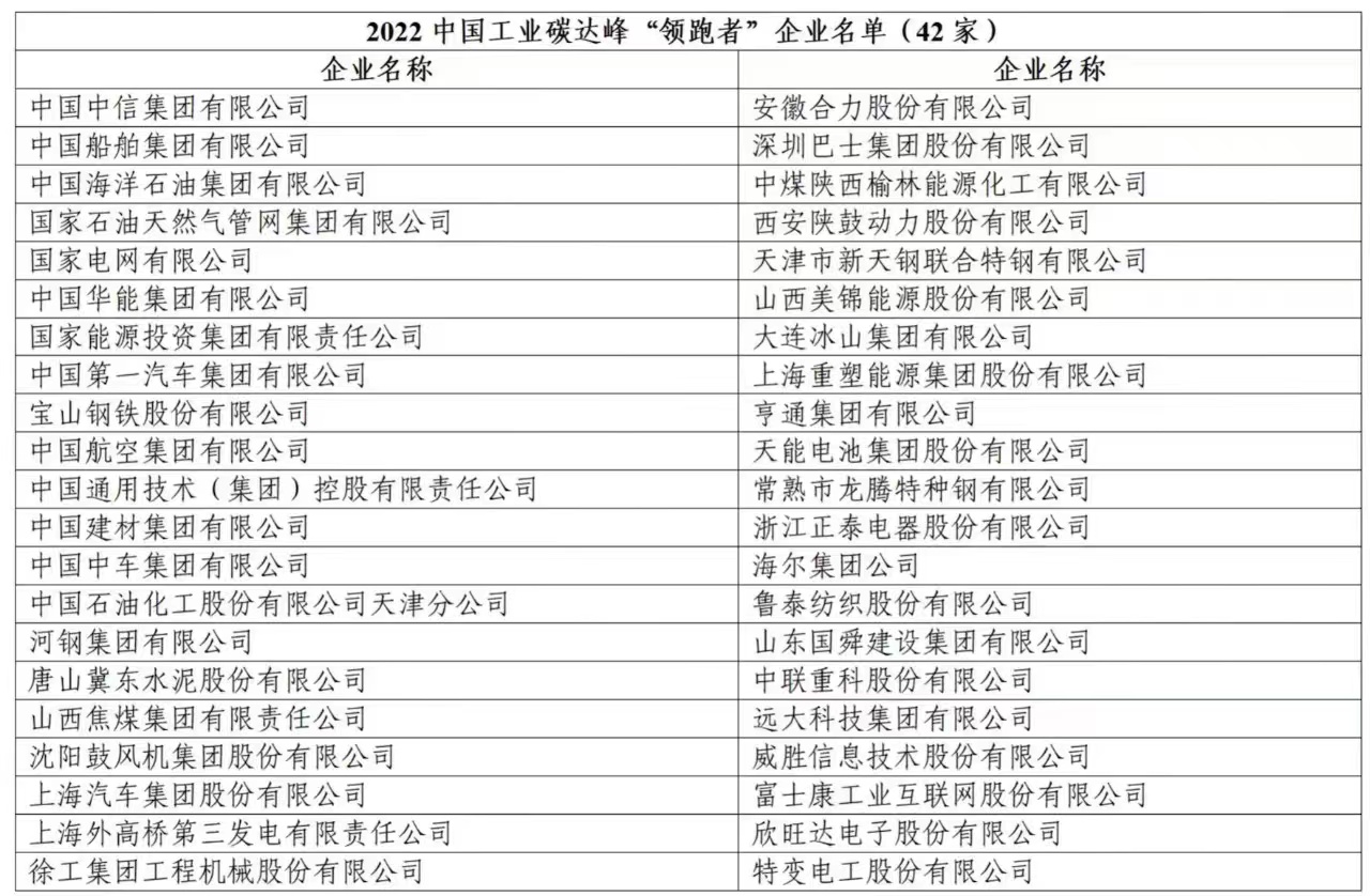 In the forum, the person in charge of the China Industrial Carbon Project Group of the China Federation of Industrial Economics introduced the research results of China Industrial Carbon "Leaders" enterprises in 2022 and released the list of the first 42 China Industrial Carbon "Leaders" enterprises, including CITIC Group. In 2022, the China Federation of Industrial Economics (CFIE) invited more than 280 leading enterprises in the industry to participate in the research work of China Industrial Carbon Pacesetter enterprises, and jointly with experts from relevant departments, local governments, industries and think tanks, through quantitative data index analysis and qualitative information research, combined with on-site presentations and questions from experts We summarize and refine typical experiences and achievements, find excellent technologies and cases, and conduct research on common problems from the perspective of enterprises' green and low-carbon transformation ability, core initiatives and effectiveness of green development, green and low-carbon technology level, products and solutions. After nine months, 42 outstanding enterprises with leading role in green development were identified, among which 13 are central enterprises, 12 are local state-owned enterprises and 17 are private enterprises/joint ventures.