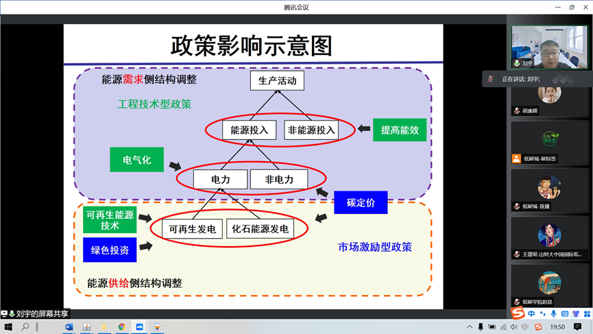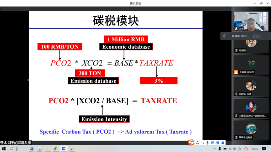 此次讲座,中国科学院科技战略研究院刘宇教授做了题为《2060年碳中和经济与排放影响分析——基于动态CGE模型》的汇报。