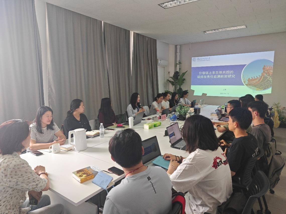 5月15日下午,学院成功举办了低碳大讲堂第二十期。本次讲座邀请到了对外经济贸易大学全球价值链实验室常务副主任、全球价值链研究院副教授、博士研究生导师王苒,主题为“价值链上多主体共担的碳排放责任追溯框架研究”。讲座由宋策老师主持,学院部分教师、全体研究生参加。
